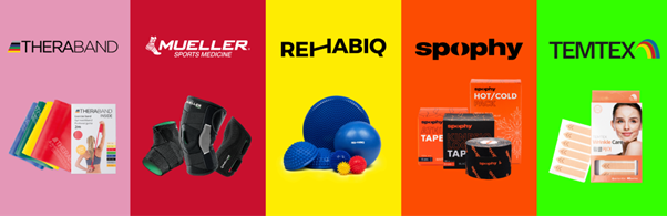 V nabídce jsou značky Spophy, Mueller, Rehabiq, Temtex, Thera-Band a řada dalších prověřených značek.